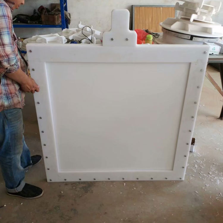 复合材料闸门,由专门研制的复合材料制成,在研制这种材料之初,就重点考虑的其质量比率,耐腐蚀性能,强度和价格因素,由此生产出的闸门,相比传统铸铁闸门和型钢闸门,其耐腐蚀性更好,质量比率低,小开启压力只需0.0003MPa,远远优于传统闸门,与不锈钢拍门相比,其低廉的造价更是具有决定性的优势,复合材料闸门是替代传